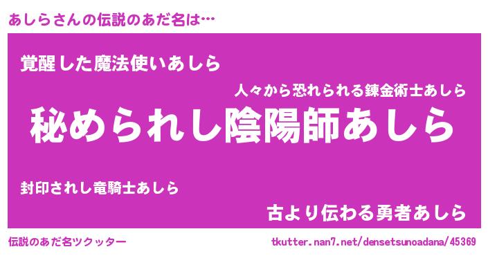 | ヒーロー風カッコイイあだ名 | 『仮面アシダー』『ウルトラあしらマン』 |