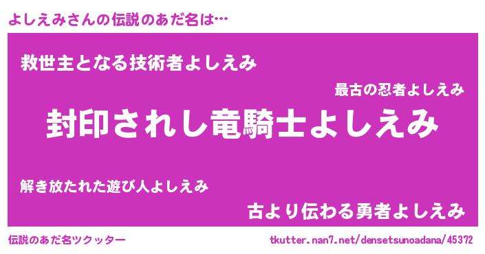 | 男性向けラノベタイトル風あだ名 | 『よしえみに滅ぼされるだけの簡単なお仕事です』 |