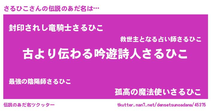 | 男性向けラノベタイトル風あだ名 | 『さるひこという概念が存在しない退屈な世界 』 |