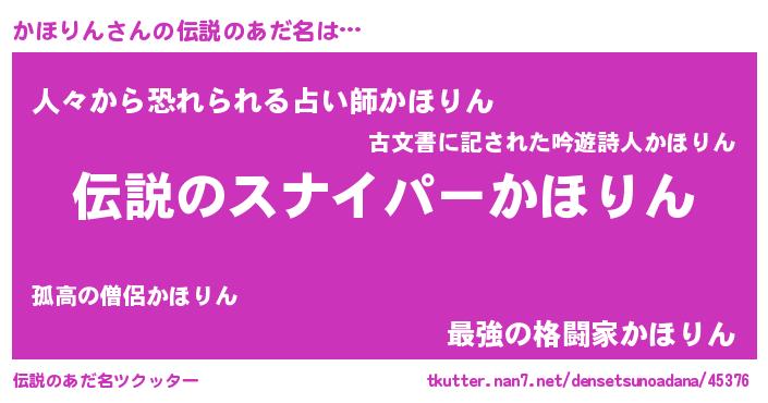 | 意味不明あだ名 | 『住所不定無職かほりん(74歳)』 |