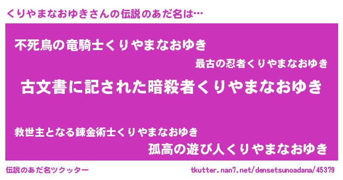 | 意味不明あだ名 | 『住所不定無職くりやまなおゆき(43歳)』 |