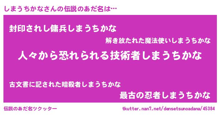 | 胡散臭い通販商品みたいなあだ名 | 『100人中100人が認めたマグネット磁石…その名も「しまうちかな」』 |