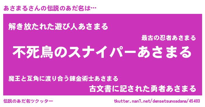 | 胡散臭い通販商品みたいなあだ名 | 『モテモテ間違いなし霊験あらたかなお札…その名も「あさまる」』 |