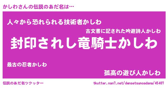 | ヒーロー風カッコイイあだ名 | 『スーパーカシワ』『天空の使者かしわ』 |