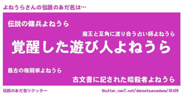 | 男性向けラノベタイトル風あだ名 | 『よねうらの嫁は女の子じゃないと思った?』 |