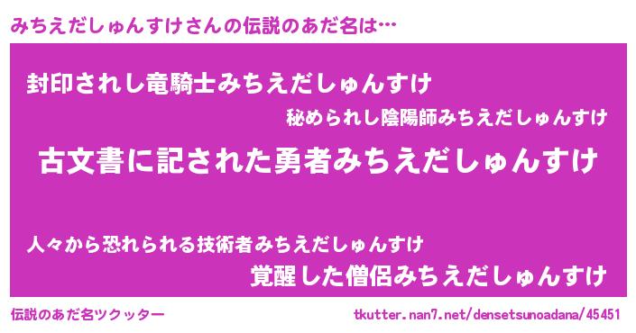 | 意味不明あだ名 | 『永久保存みちえだしゅんすけ』 |