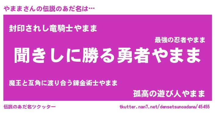 | 欧米人風あだ名 | 『アンジェラ・やまま』 |