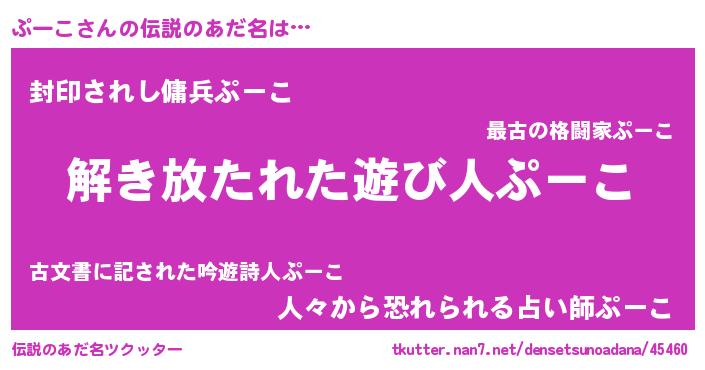 | ヒーロー風カッコイイあだ名 | 『魔戒騎士プー』『スーパープーコ』 |
