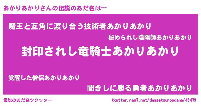 | 男性向けラノベタイトル風あだ名 | 『あかりあかりに滅ぼされるだけの簡単なお仕事です』 |