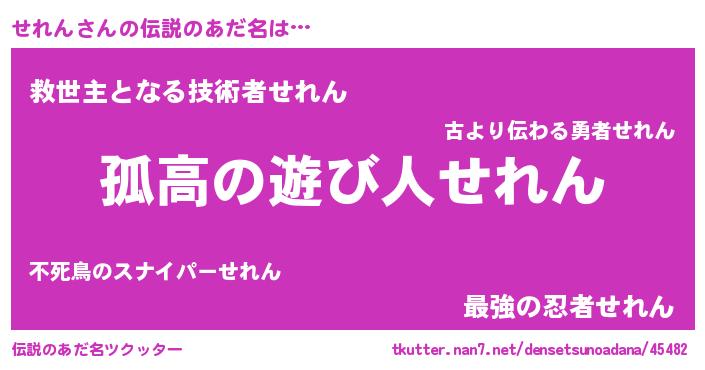 | 意味不明あだ名 | 『自称せれん』『とにかく怪しいせれん』 |