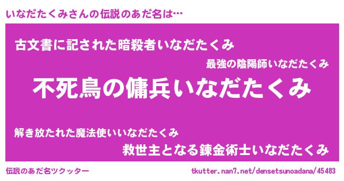 | 男性向けラノベタイトル風あだ名 | 『いなだたくみに滅ぼされるだけの簡単なお仕事です』 |