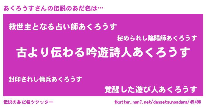 | ヘコむあだ名 | 『あくろうす(小並感)』『あくっ子』 |