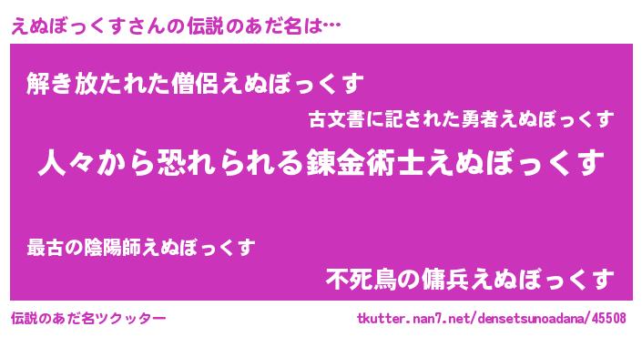 | 男性向けラノベタイトル風あだ名 | 『エヌボックススレイヤー』 |