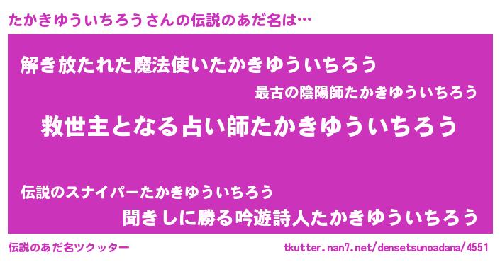 | ヘコむあだ名 | 『たか太郎』『たかきゆういちろう(爆)』 |