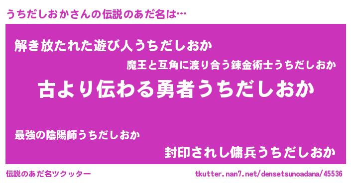 | 意味不明あだ名 | 『永久保存うちだしおか』 |
