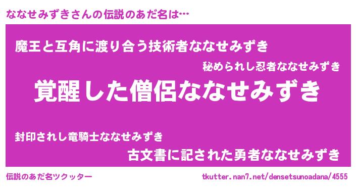 | 男性向けラノベタイトル風あだ名 | 『ななせみずきに滅ぼされるだけの簡単なお仕事です』 |