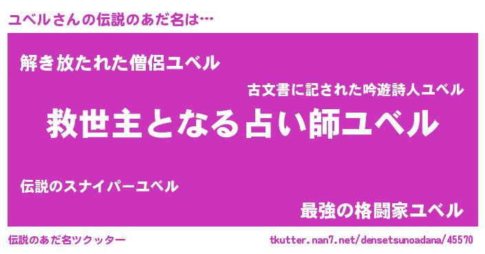 | 意味不明あだ名 | 『住所不定無職ユベル(14歳)』 |
