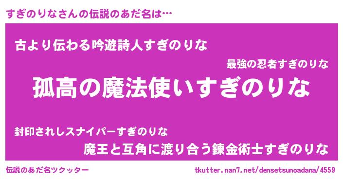 | 胡散臭い通販商品みたいなあだ名 | 『信頼と実績のサプリメント…その名も「すぎのりな」』 |