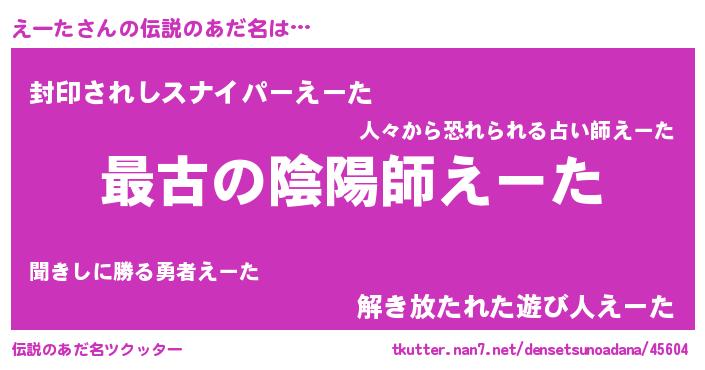 | 意味不明あだ名 | 『えーたフォーエバー』『自称えーた』 |