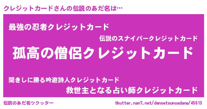| 意味不明あだ名 | 『とにかく怪しいクレジットカード』 |