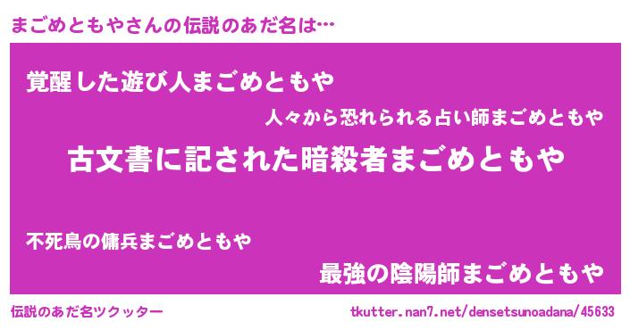 | 男性向けラノベタイトル風あだ名 | 『この素晴らしい世界にまごめともやを!』 |