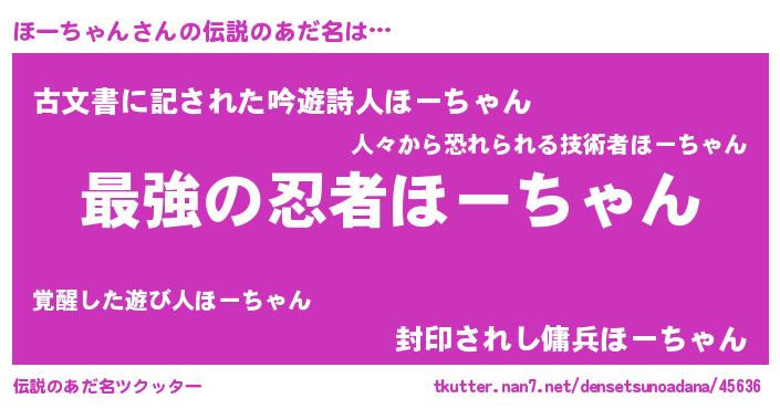 | ヒーロー風カッコイイあだ名 | 『ウルトラほーちゃんマン』 |
