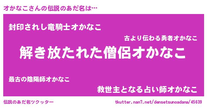 | 女子向けラノベタイトル風あだ名 | 『男装オかなこの憂鬱な任務』 |