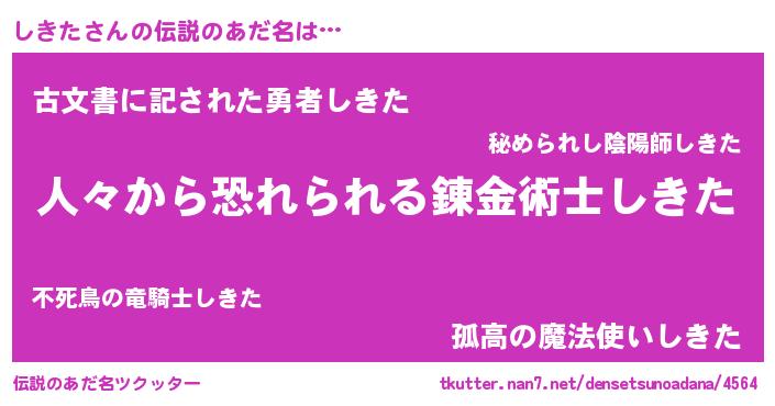 | 男性向けラノベタイトル風あだ名 | 『緋弾のシキタ』『シキタスレイヤー』 |