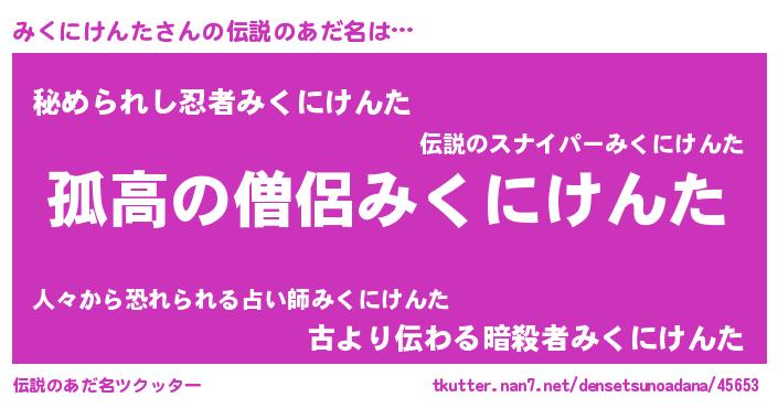 | 意味不明あだ名 | 『とにかく怪しいみくにけんた』 |