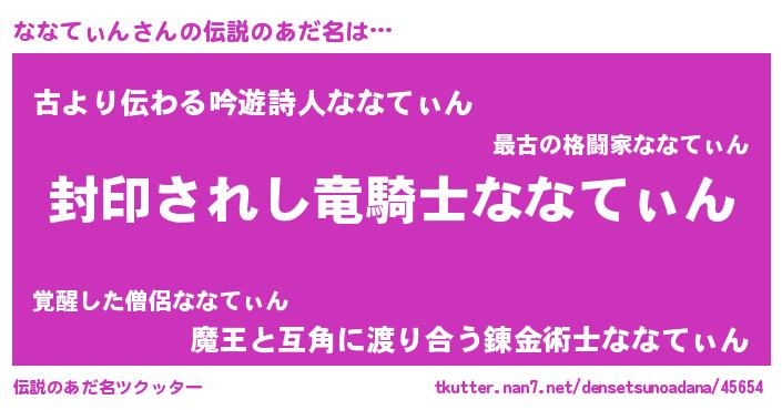 | 意味不明あだ名 | 『ペロリンななてぃん』 |