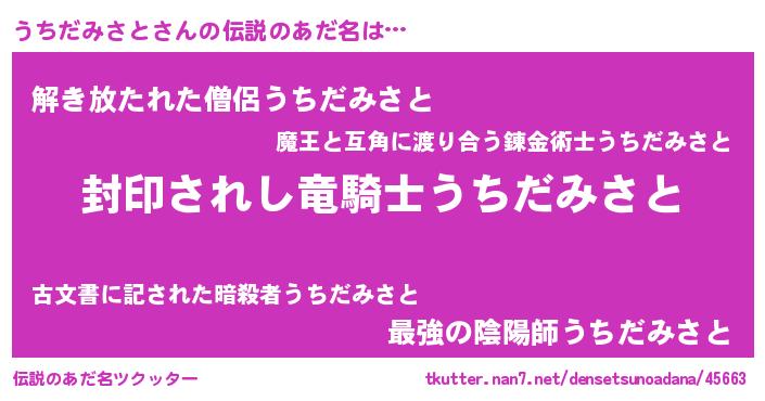 | ヒーロー風カッコイイあだ名 | 『スーパーウチダミサト』『銀牙騎士ウチ』 |