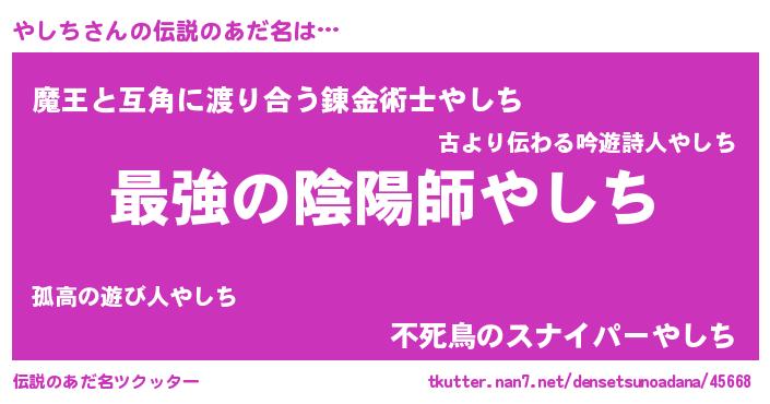 | ヒーロー風カッコイイあだ名 | 『仮面ヤシダー』『ウルトラやしちマン』 |