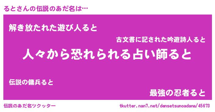 | 男性向けラノベタイトル風あだ名 | 『おまえをオタクにしてやるから、俺をるとにしてくれ! 』 |