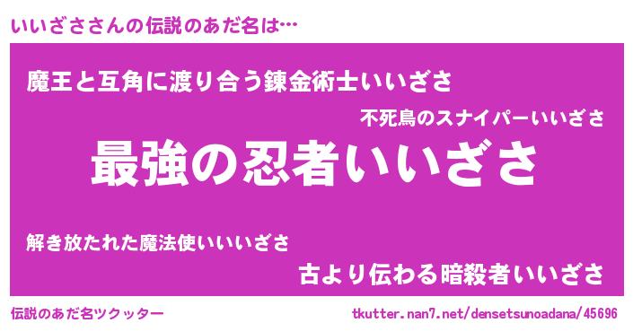 | 男性向けラノベタイトル風あだ名 | 『Re:いいざさから始める異世界生活』 |