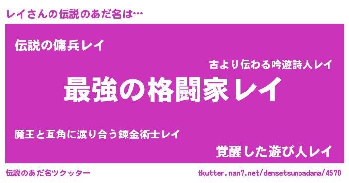 | ヒーロー風カッコイイあだ名 | 『仮面レイダー』『ウルトラ戦士レイ』 |