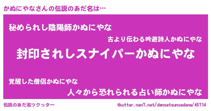 | ヒーロー風カッコイイあだ名 | 『スーパーカヌニヤナ』『仮面カヌダー』 |