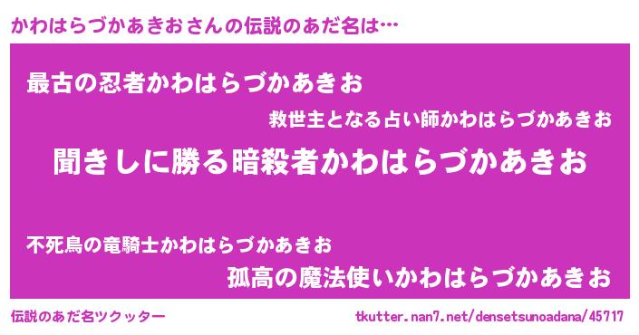 | 意味不明あだ名 | 『永久保存かわはらづかあきお』 |