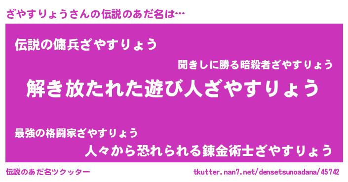 | ポケモン風あだ名 | 『ヒザヤスリョウ』『ザヤチュウ』 |