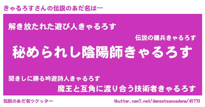 | 意味不明あだ名 | 『住所不定無職きゃるろす(74歳)』 |