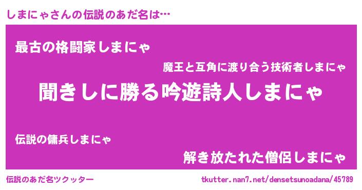 | 男性向けラノベタイトル風あだ名 | 『魔法科高校のしまにゃ』 |