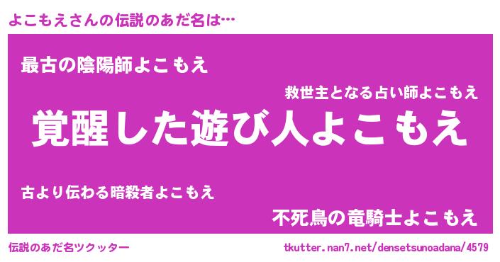 | 意味不明あだ名 | 『住所不定無職よこもえ(95歳)』 |