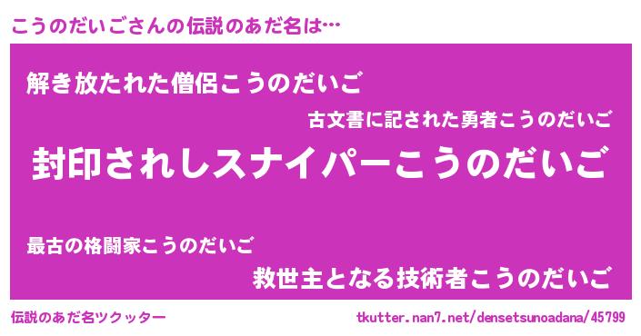 | 意味不明あだ名 | 『住所不定無職こうのだいご(93歳)』 |