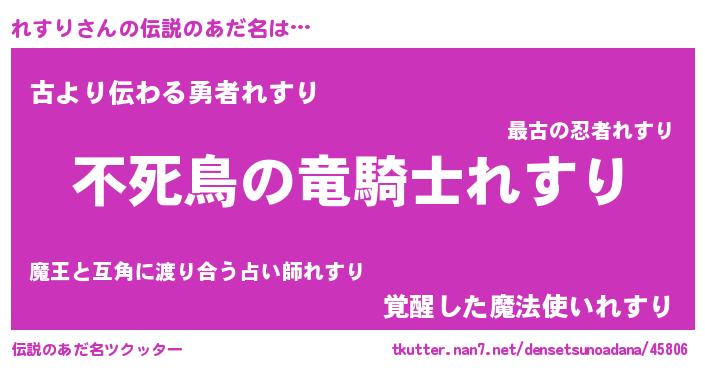 | 男性向けラノベタイトル風あだ名 | 『れすりの憂鬱』『魔法科高校のれすり』 |