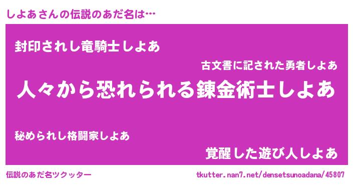 | ヒーロー風カッコイイあだ名 | 『友情の使者しよあ』『スーパーシヨア』 |
