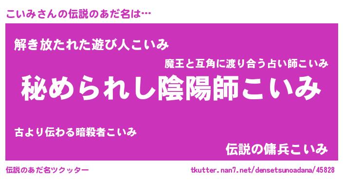 | 男性向けラノベタイトル風あだ名 | 『緋弾のコイミ』『はたらくこいみさま!』 |