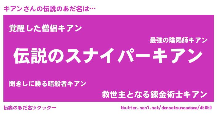 | 男性向けラノベタイトル風あだ名 | 『キアンの憂鬱』『はたらくキアンさま!』 |