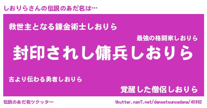 | 男性向けラノベタイトル風あだ名 | 『この素晴らしい世界にしおりらを!』 |