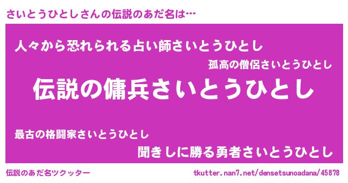| 意味不明あだ名 | 『自称さいとうひとし』 |