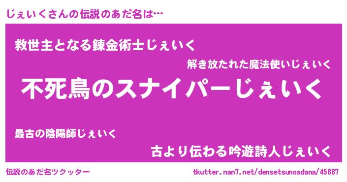 | 意味不明あだ名 | 『自称じぇいく』『ペロリンじぇいく』 |