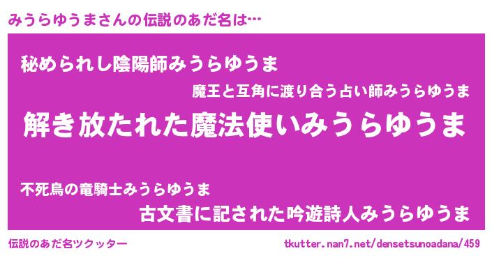 | 男性向けラノベタイトル風あだ名 | 『魔法科高校のみうらゆうま』 |